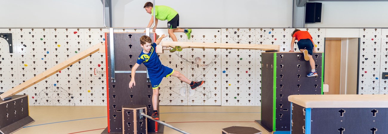 Klimmen, klauteren, duikelen, draaien, zwaaien, werpen; alle traditionele basisvaardigheden kunnen met de Cube Sports materialen op een vernieuwende en uitdagende manier worden geoefend.